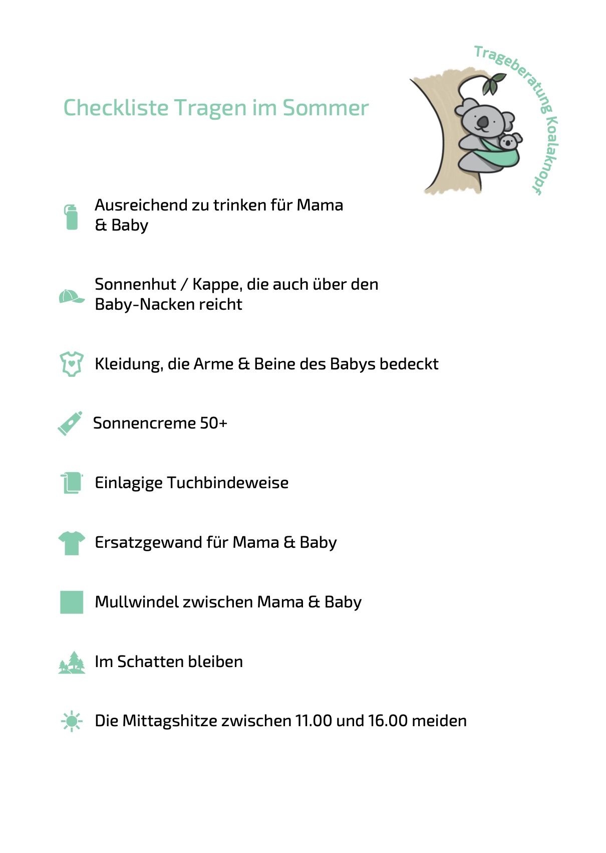 Sorgt euch nicht, denn die große Riege der TrageberaterInnen hat seit Generationen ihr Wissen gesammelt, weitergereicht, und schließlich habe ich es für euch auf einer kurzen Checkliste zusammengeschrieben.